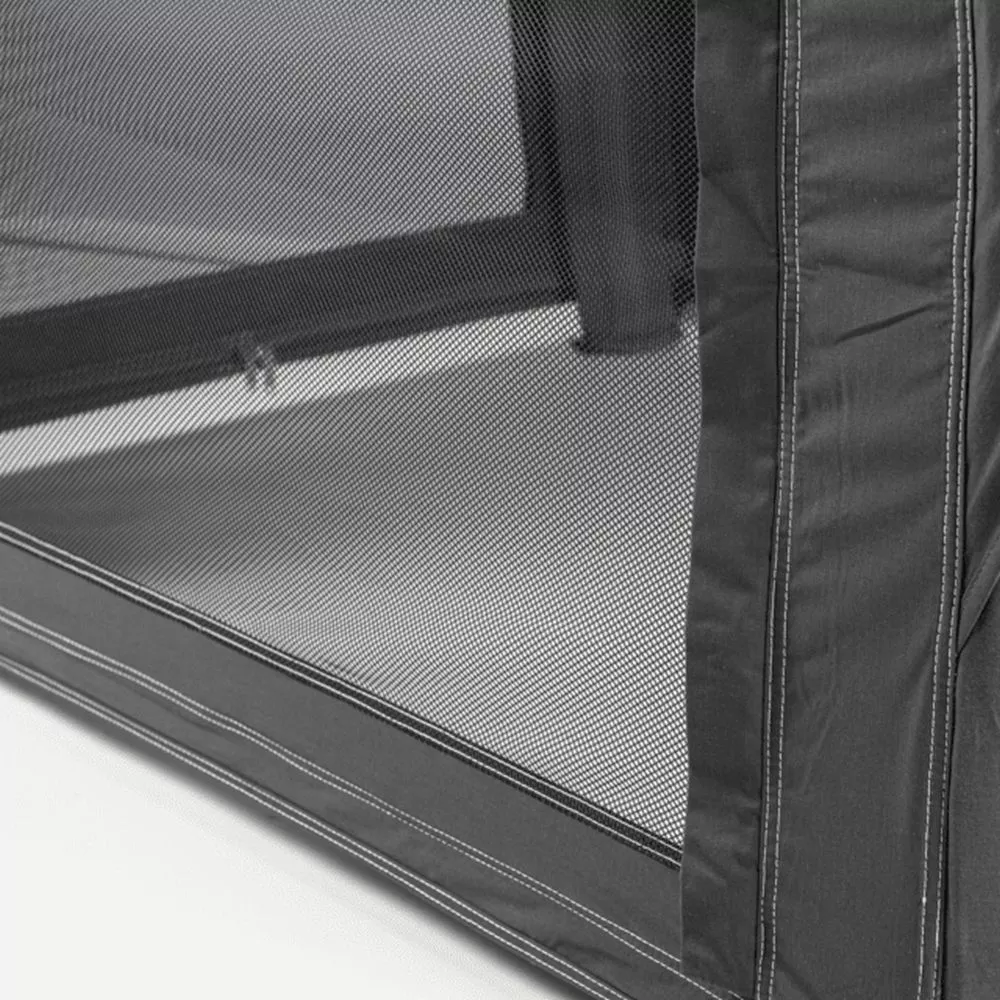 - integrierte Netzeinsätze auf drei Seiten gewährleisten die Zirkulation von Frischluft im Inneren und halten lästige Insekten fern