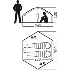 Überzelt: 68D reissfestes Polyester mit Polyurethan und DWR, Wassersäule: 1500 mm
