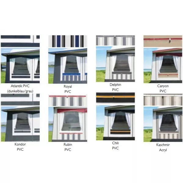 Die Individual- und Luxus-Klasse der dwt Vorzelte heisst Atelier Chalet. Denn hier kommt nichts von der Stange. Jedes dwt Atelier Vorzelt ist ein Unikat. Farbgestaltung, Material (PVC oder Acryl), Dachform (hier mit Rundumdach), Gestänge (Stahl- oder Alu), Vorderwand und Seitenwand-Gestaltung, Zelttiefe – Du ganz allein entscheidest! Denn dieses Luxus-Vorzelt wird exklusiv für dich – von Hand und mit viel Liebe zum Detail – angefertigt.
