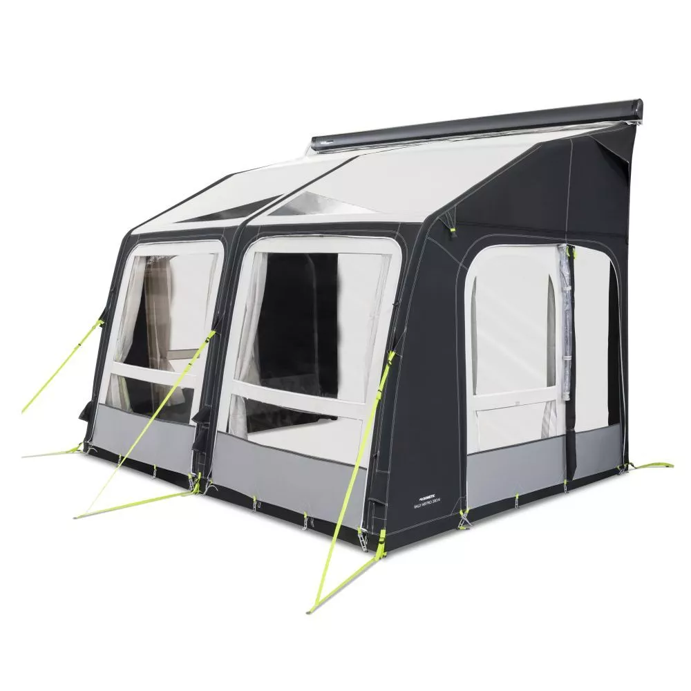 Das aufblasbares Reise- und Saisonvorzelt Dometic Rally Air Pro 390 M ist ideal für Wohnmobile geeignet. Es oasst an Fahrzeuge mit einer Anschlusshöhe von 265 – 295 cm und dank dem patentierten und höhenverstellbaren Multi-Height-System ist sehr variabel einsetzbar und kann an mehreren Fahrzeugentypen mit bis zu einer Anschlusshöhe von 295 cm angeschlossen werden. Mit einer stolzen Grösse von 390 x 250 cm (BxT) hast du genügend Platz um mit Freunden und Familie einen gemütlichen Campingurlaub zu verbringen.